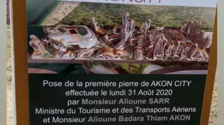Первый камень нового города был заложен при участии министра туризма Сенегала Алиуна Сарра. "Я произвел закладку первого камня устойчивого города Akon City в компании его спонсора, нашего соотечественника Алиана Бадары Тиама, известного как Akon", - говорится в сообщении министра туризма.
