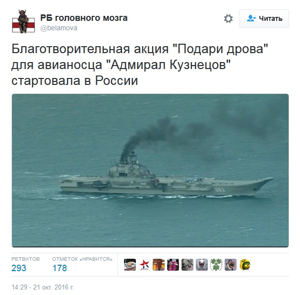 Издание отмечает, что стареющее судно советской эпохи "Александр Кузнецов", который был переоборудован в прошлом году, - единственный авианосец России. Но учитывая, что на вооружении у Великобритании в настоящий момент нет ни одного, то он производит сильное впечатление.