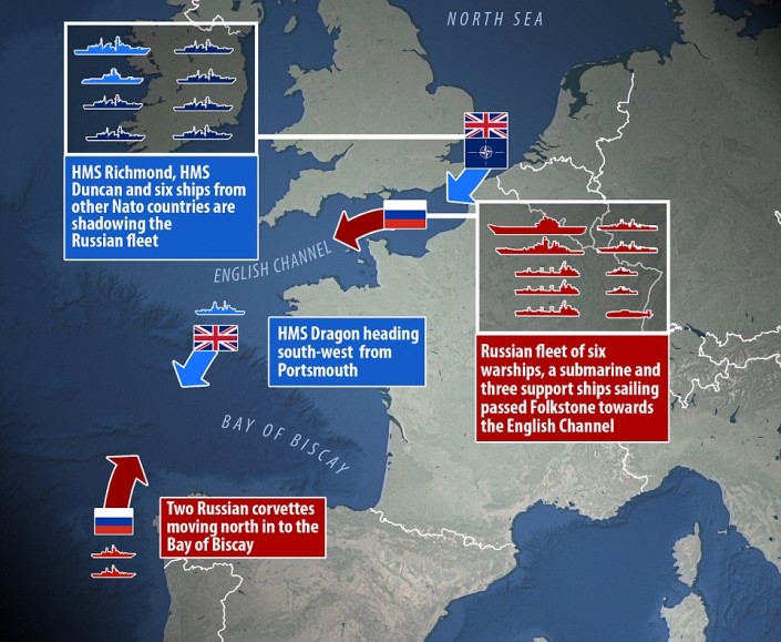 Daily Express нагнетала ситуацию, докладывая о приближении судов: "Российская атомная мощь у нас на пороге: грозный атомный флот Путина в 10 милях от Дувра".