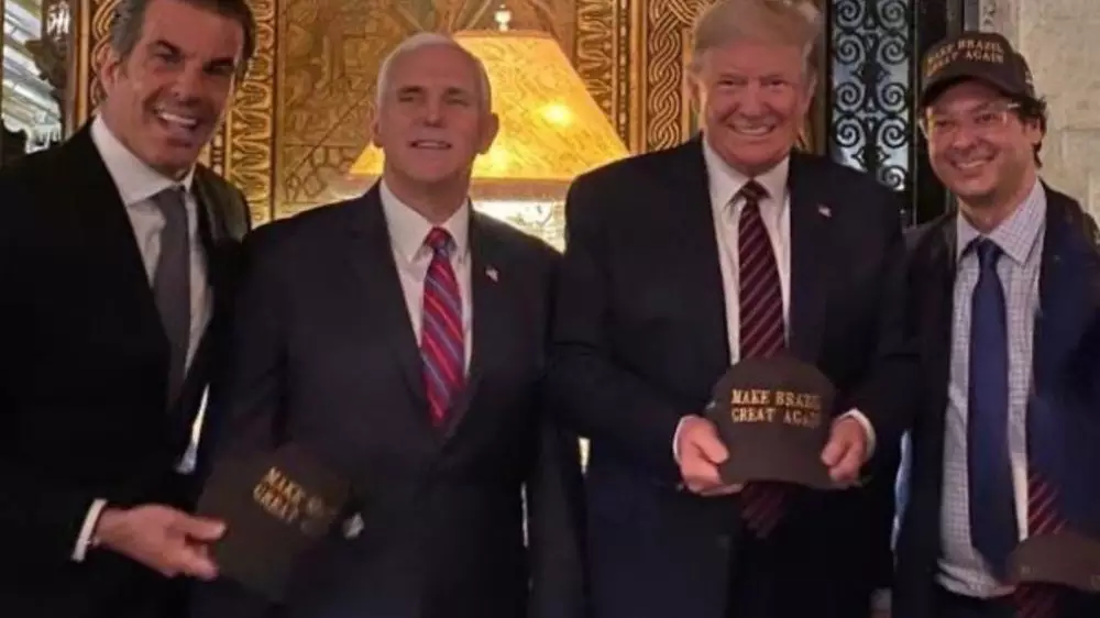Контакты Трампа и бразильской стороны происходили во Флориде. На одной из фотографий с этой встречи можно увидеть Уайнгартнера стоящим слева от Трампа в кепке с надписью: "Сделать Бразилию великой снова".