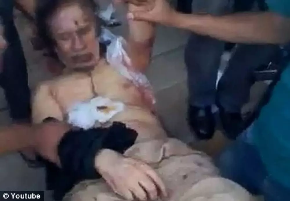 На шокирующих кадрах запечатлен мертвый Каддафи в окружении мятежников, забавляющихся с головой своего лидера, как с куклой чревовещателя. Молодые люди выкрикивают что-то по-арабски и снимают происходящее на камеры сотовых телефонов. Затем полуобнаженное и окровавленное тело вытаскивают из джипа и грузят на какие-то носилки.