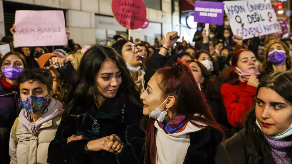 "Мы не молчим, не боимся, не подчиняемся", - скандировали демонстранты и поднимали транспаранты, требуя срочных действий против гендерного насилия в Турции.