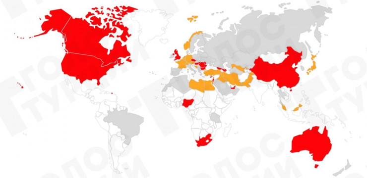 Как голосуют турки за пределами Турции. Красный цвет - за Кылычдароглу, желтый - за Эрдогана.