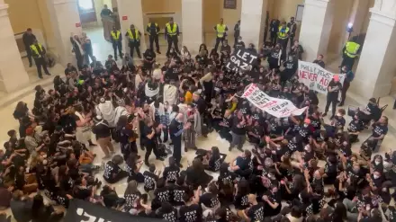 Как сообщила полиция Капитолия, протестующие, одетые в черные рубашки с надписями "Евреи, скажите прекратить огонь сейчас", "Не от нашего имени", "Дайте Газе жить", заняли большую ротонду старейшего здания Конгресса США - здание Кэннона.