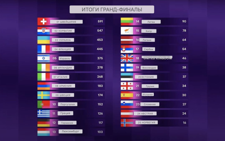 Таким образом, Швейцария стала первой на 68-м конкурсе "Евровидение" с песней "The Code" в исполнении певца Немо.