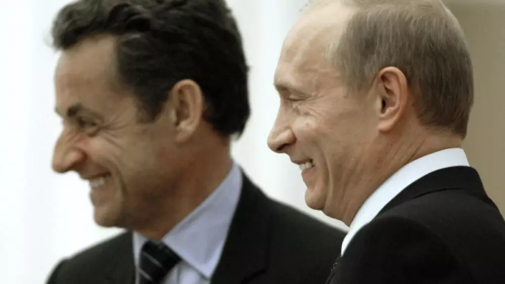 "Я сидел между Владимиром Путиным, которого видел впервые, и Ангелой Меркель, которая предупредительно усадила меня слева от себя, оставив место справа для Джорджа Буша", - написал бывший французский лидер в мемуарах "Время бурь".