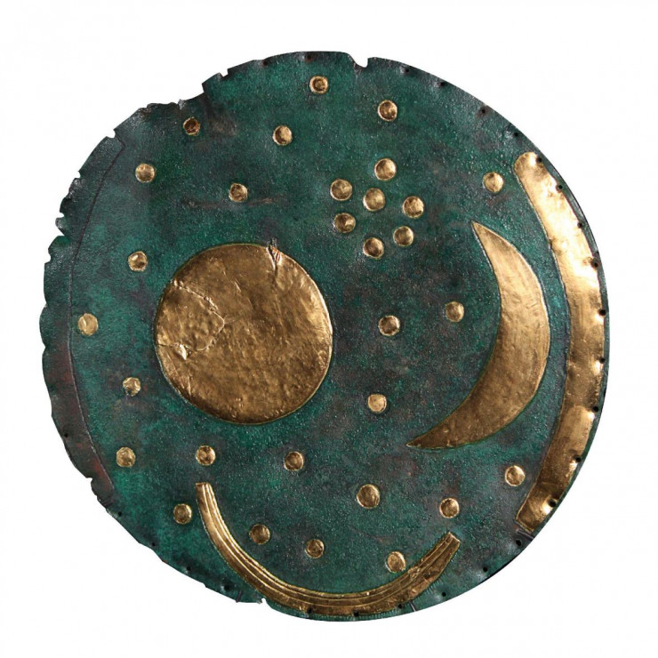 Бронзовый диск диаметром 30 сантиметров, покрытый патиной цвета аквамарина, со вставками из золота, изображающими Солнце, Луну и 32 звезды, в том числе скопление Плеяды, был обнаружен в Германии в 1999 году и считается одной из самых важных находок и археологической сенсацией XX века.