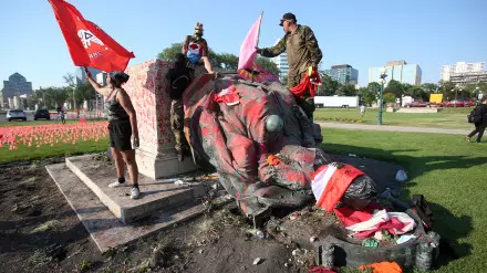 В канадском городе Виннипег аборигены сбросили статуи британских королев Виктории и Елизаветы II, установленные перед зданием законодательного собрания провинции Манитобы, во время акции "Каждый ребенок имеет значение" (Every child matters).