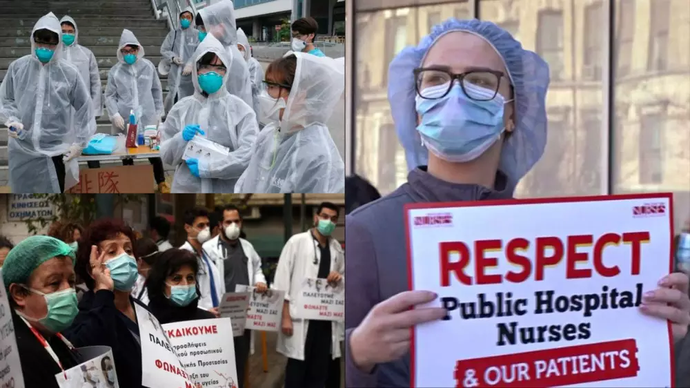 Бір апта бұрын Грекияның бірнеше қаласында бірқатар аурухананың медициналық қызметкерлері үнсіз шеру акциясына шықты. Дәрігерлердің назы - коронавирус кезінде қызметкерлердің жетіспеуі, жағдай жасалмауы.