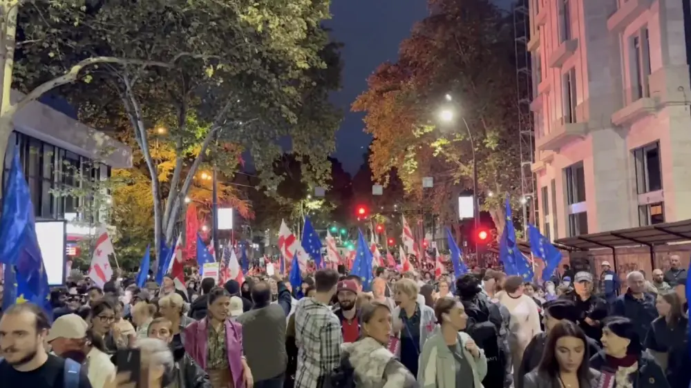 Протестующие собрались у здания Тбилисского госуниверситета, оттуда направились к парламенту Грузии.