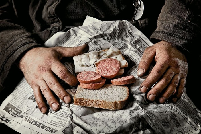 "Чаще всего это кусок хлеба и колбасы либо сала, огурец и так далее. Все это обычно заворачивают в газету, а теперь уже, наверное, в целлофан. Очень плотно заворачивают, ведь нужно взять столько, чтобы хватило, но при этом не порвало и не оттягивало карман. Я в пять часов утра полусонный это делал в два движения: хватаешь, что под руку попадет. А внизу делали "стол": газетку стелили, быстро перекусывали и дальше.