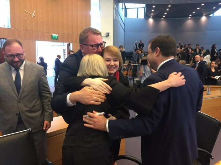 "Почитайте вялое и беззубое заявление МИД РФ относительно решения Международного трибунала по морскому праву и поймете масштаб нашей сегодняшней победы", - написал в Twitter глава МИД Украины Павел Климкин. Министр прикрепил к посту фотографию обнимающихся коллег и пояснил, что так выглядит "дипломатическое счастье".
