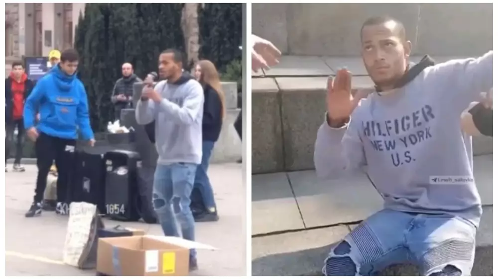 Видео нападения появилось в украинских телеграм-каналах. В описании к ролику сказано, что темнокожего парня зовут Денчик. Раньше он уже выступал в Харькове и во Львове, а в Киев приехал, чтобы заработать денег.