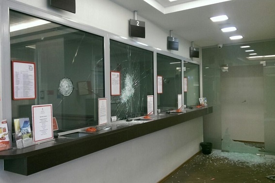 Между тем, как сообщалось ранее, днем в центре Киева неизвестные лица камнями разбили стекло в витринах Альфа-банка, Сбербанка России и в офисе бизнесмена Рината Ахметова. Полиция открыла четыре производства по погромам в российских банках и офисе Ахметова в Киеве.