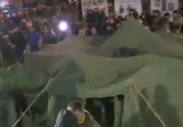 Как сообщает телеканал "112 Украина", палатки установили люди, которые называют себя "Революционными правыми силами".