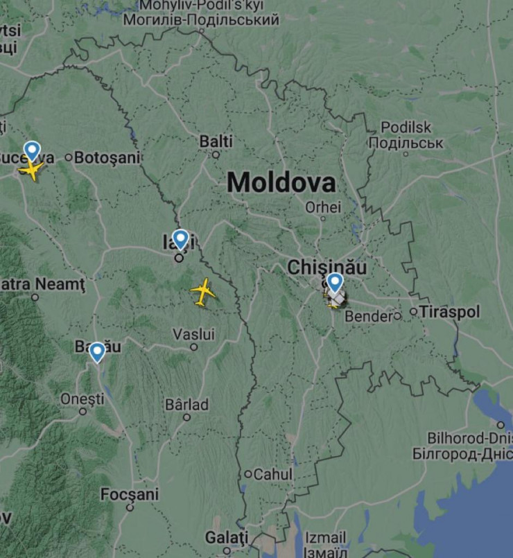 Как выглядит территория Молдовы после запрета на полеты гражданской авиации.