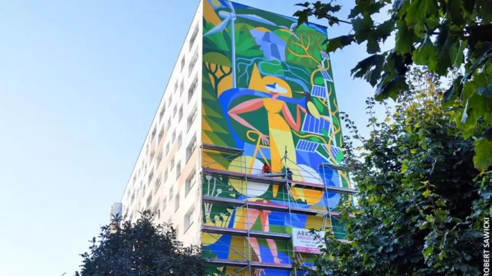 В начале октября экорисунок площадью 374 квадратных метра появился на стене многоэтажки в городе Быдгощ на севере Польши. Его нанесли с помощью минеральной фотокаталитической краски - под действием света она разрушает летучие органические субстанции и делает воздух чище.