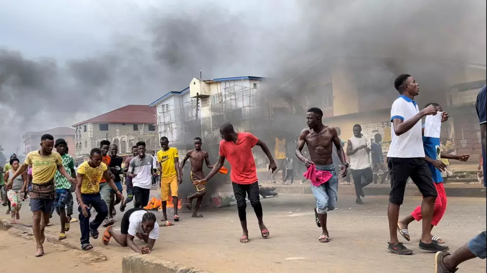 На видео в социальных сетях видны большие толпы протестующих и груды горящих шин в некоторых частях Фритауна. На других кадрах видно, как группа молодых людей бросает камни на улицу, залитую беловатым дымом.