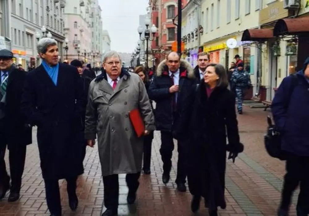 Госсекретарь США Джон Керри во время визита в Москву 15 декабря совершил прогулку по Старому Арбату. Высокого гостя сопровождали его помощница Виктория Нуланд и посол США в России Джон Тефт. Фотографии с этого события опубликовал в Twitter пресс-секретарь американского посольства Уильям Стивенс.