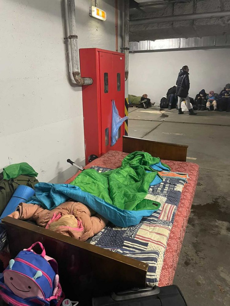 Девушка сообщила, что переночевать ее семье пришлось в убежище, которым послужила подземная автомобильная парковка.