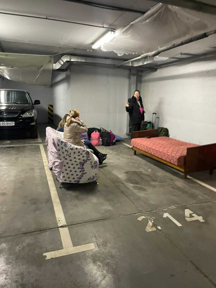 Девушка сообщила, что переночевать ее семье пришлось в убежище, которым послужила подземная автомобильная парковка.