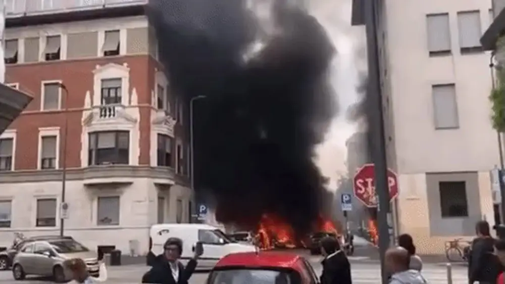 Multiple vehicles on fire in the center of #Milan in northern #Italy after large explosion - reports. pic.twitter.com/smS0pDQk2Z