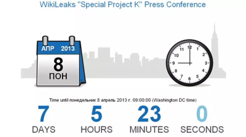 WikiLeaks анонсировал новый "Специальный проект К" и запустил отсчет времени до пресс-конференции, запланированной на 8 апреля в Вашингтоне, сообщает Russia Today.
