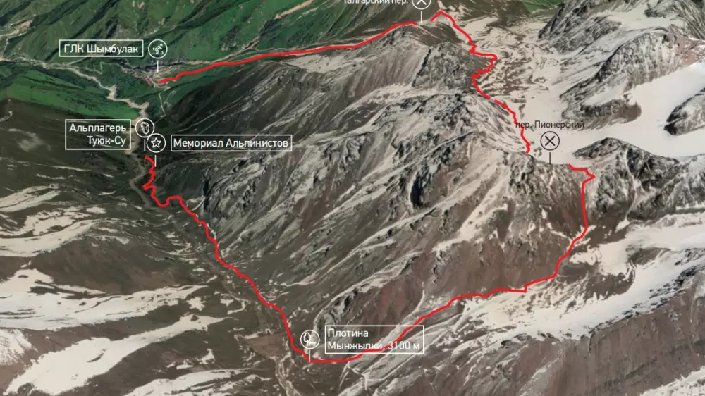 Описание: альпинистский лагерь "Туюк-Су" - Мынжилки - перевал Пионер - Шымбулак