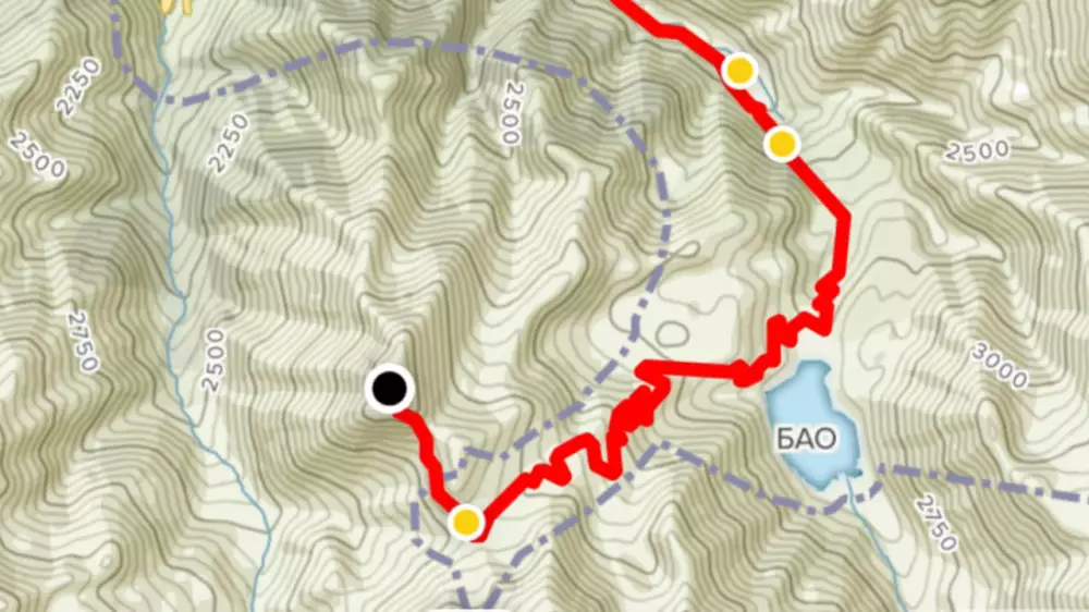 Описание: BS 28 (остановка автобуса № 28) - ГЭС-1 - Большое Алматинское озеро - перевал Жусалы-Кезень - Большой Алматинский пик - спуск по пути подъема.