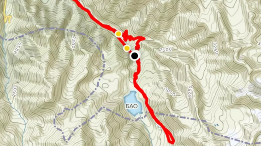 Описание: BS 28 (остановка автобуса № 28) - ГЭС-1 - Большое Алматинское озеро - подножие пика Сатпаева (Советов). Спуск по пути подъема.
