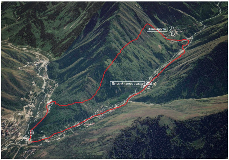 Описание: BS 28 (остановка автобуса № 28 ГЭС-2) - ущелье Проходное - курорт "Алма-Арасан" - спуск по водораздельному хребту - BS 28 (ГЭС-2)