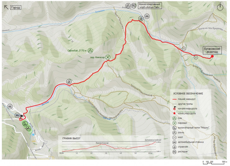 Через 20-25 минут она приводит к Бутаковскому водопаду (43.1723° N, 77.1140° E)