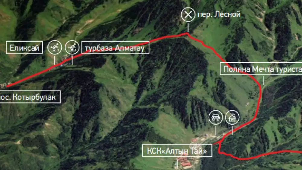 Описание: Медеу - перевал Кимасар (Комиссаровский) - ущелье Бутаковское - поляна "Мечта туриста" - перевал Лесной - вершина Котырбулак - турбаза "Алматау"