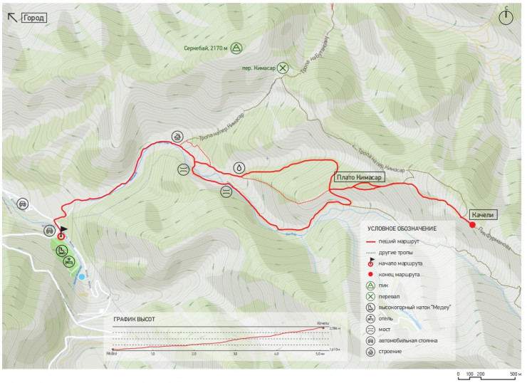 Маршрут начинается ниже автостоянки высокогорного катка "Медеу".