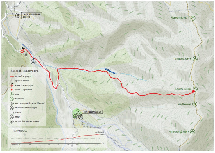 Описание: ущелье Горельник - ущелье Сарысай - Сарысайский хребет