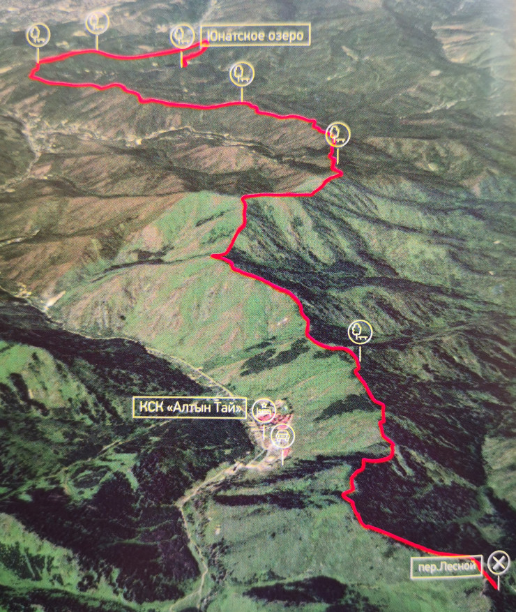 GPS координаты: Юннатское озеро - 43.2073341, 77.0151418, перевал Лесной - 43.1818276, 77.1147537