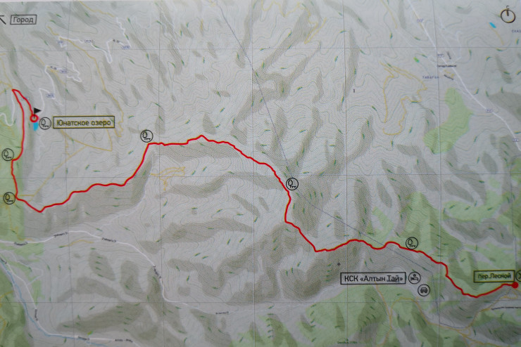 От озера Юннатское начинаем движение по западному холму. Следуя указателям, постепенно выходим на северный гребень Бутаковского ущелья. Двигаясь по гребню в восточном направлении, следуем указателям, которые приведут нас к Лесному перевалу.